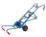 Handpritschenwagen im Baukasten-System aus Profilstahl geschweißt, pulverbeschichtet blau RAL 5007, 4 Eckhülsen. Drehschemel-Lenkung mit Kugelkranz, Scherendeichsel mit Sicherheits-Handgriff und automatischer gedämpfter Rückstellung in Ruheposition. Ladefläche belegt mit rutschsicherer Siebdruckplatte aus wasserfestem Sperrholz. Naben mit Rollenlager. Automatische Feststellbremse auf die Vorderräder wirkend, entspricht EN 1757-3. Stirnwände mit Plattform verschraubt, Längswände einhängbar und herausnehmbar. Stahlrohrrahmen mit eingeschweißtem Drahtgitter 40 x 40 x 4 mm, 4 Drahtgitterwänden 1000 mm hoch, pulverbeschichtet blau RAL 5007. Ladefläche = Länge -65 mm, Breite -5 mm. Achtung, die Bereifung 260 x 85 mm wird nicht auf der Abbildung gezeigt! Die Abbildung zeigt die Reifengröße 400 x 80 mm.