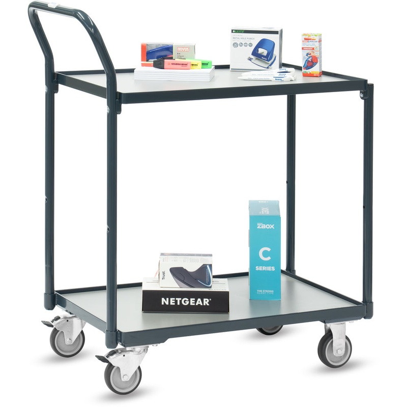 fetra Kompakter Tischwagen „Basic“ mit 2 Böden im Rahmen liegend, 12 mm Rand