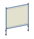 Zum Längstransport von großflächigen Holz- und Kunststoffplatten, Stahlrohr-Konstruktion mit Stahlblech-Schaufel, pulverbeschichtet blau RAL 5007. Räder wahlweise mit Vollgummi- oder Luft-Bereifung. Naben mit Rollenlager. 2 Stützrollen 50 mm Ø. Zerlegte Anlieferung. Anlagen mit Profilgummi belegt (rutschsicher), und einstellbarem Niederhalter als Kippsicherung.